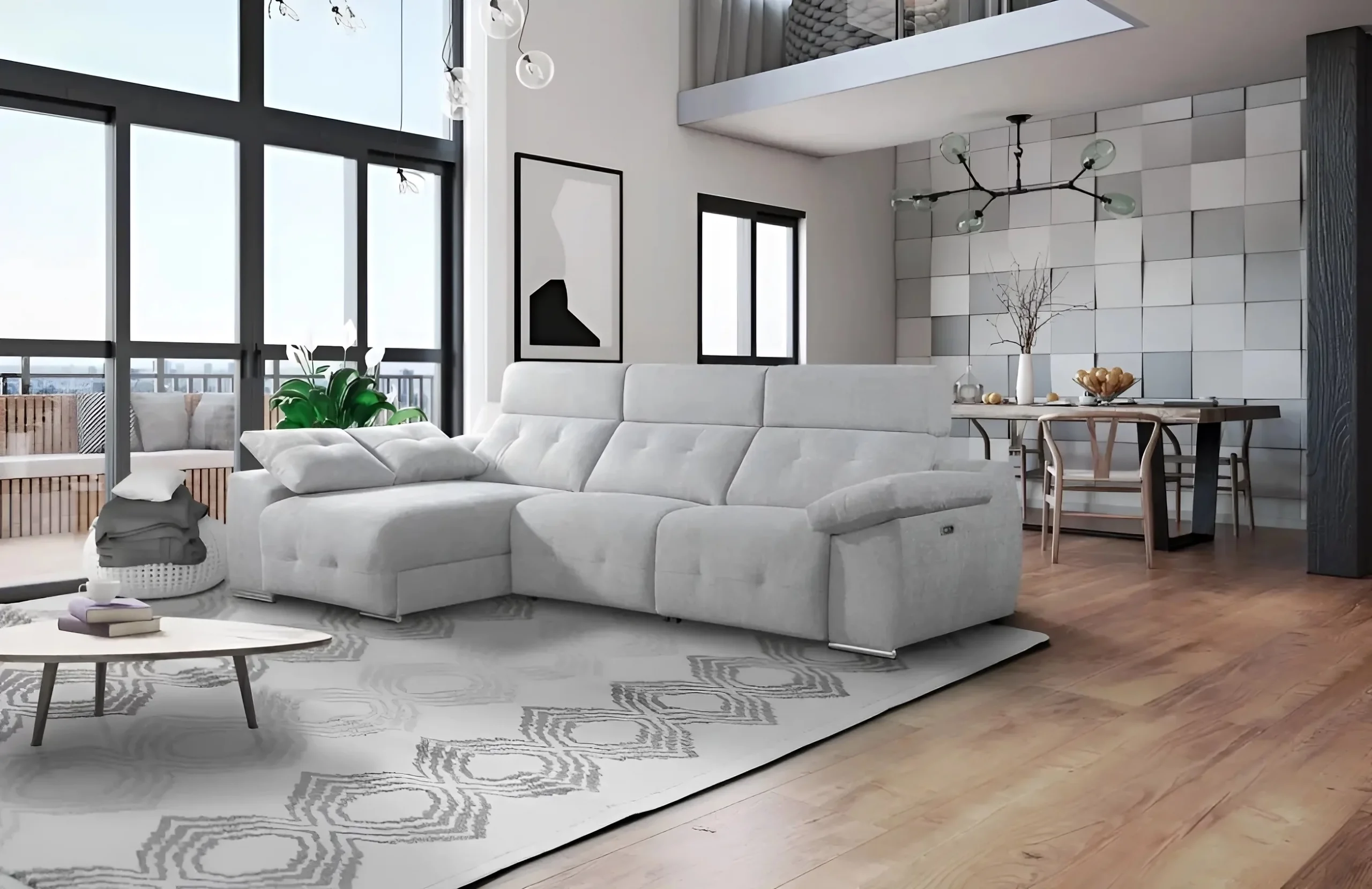 Estructura robusta, asientos con muelles ZZ, espuma HR 35 kg y viscoelástica. Cabezales reclinables y múltiples arcones.