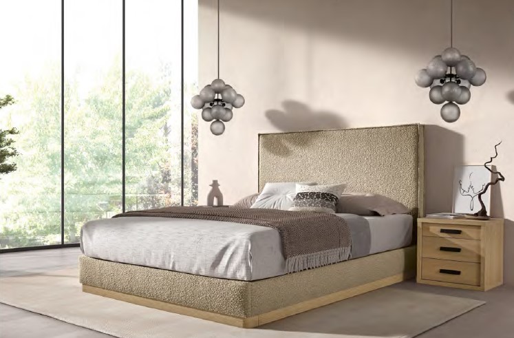 Los largueros y pieceros tapizados, con el canto de la tapa a juego, ofrecen un acabado uniforme y elegante, y la tapa oculta realza la estética minimalista. Completa la pieza su zócalo de madera en acabados blanco, roble o carbón, y el fondo de melamina textil con perfil protector anti polvo y ralladuras, fijado con 26 tornillos para máxima durabilidad. Disponible en amplia gama de tapizados para adaptarse a tu estilo