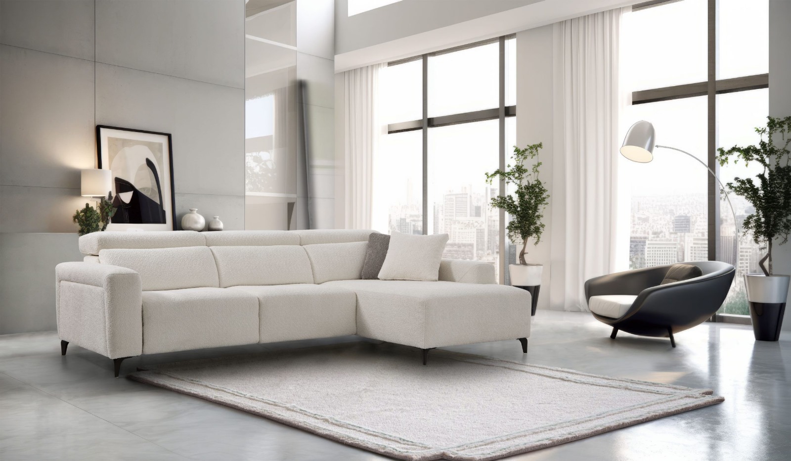 Sofá deslizante al suelo: Confort suave y diseño moderno.